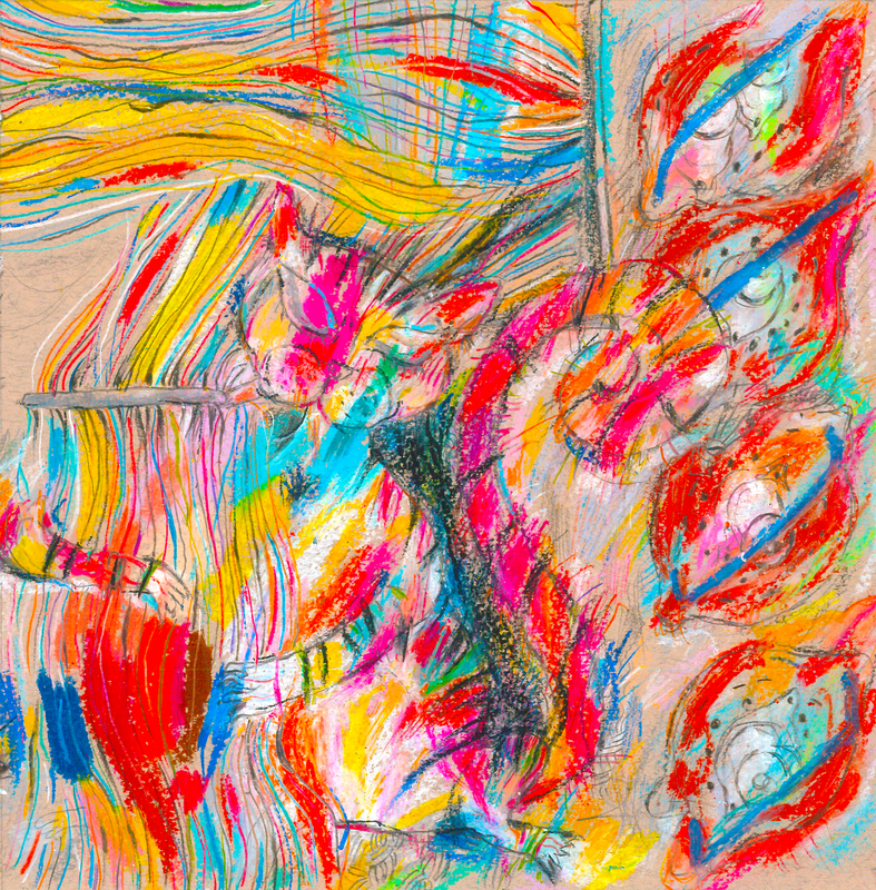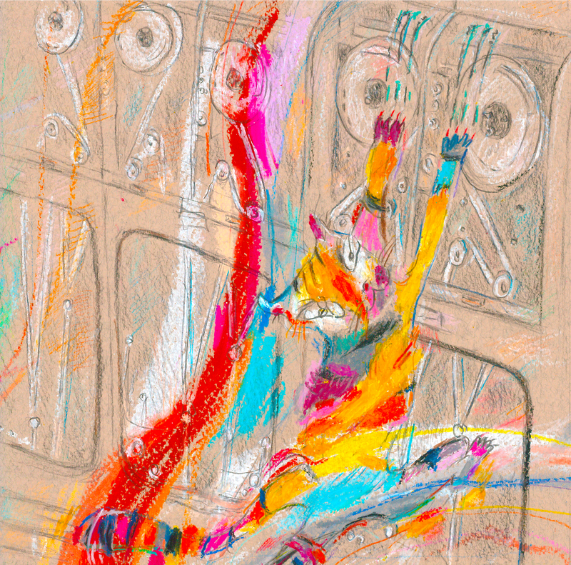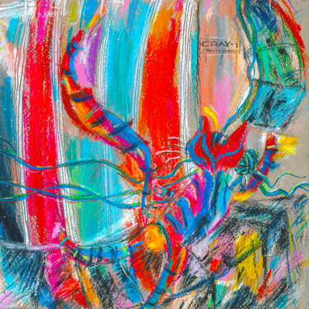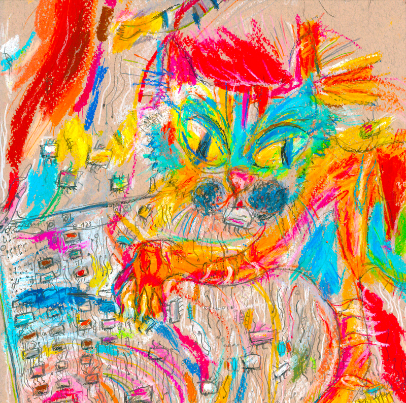 Mentre penso e butto giù qualche schizzo, rispolvero un mio vecchio disegno con una decina di gatti, in una città immaginaria, legati da tanti fili colorati... FILI COLORATI! Ma sono identici a quelli dello Zuse!