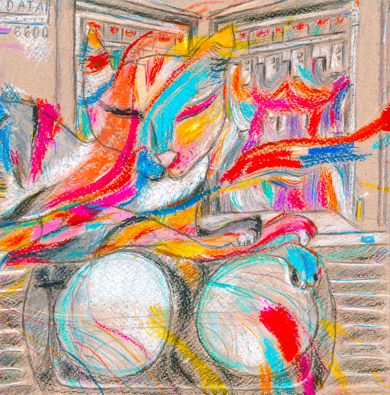 Appurato che l'idea esisteva già, ecco che il gatto Giugno suona lo Zuse creando una maglia di fili musicali che avvolge tutti i mesi, avanti e indietro nel tempo (che importa?), fino a Dicembre che guarda al nuovo anno.